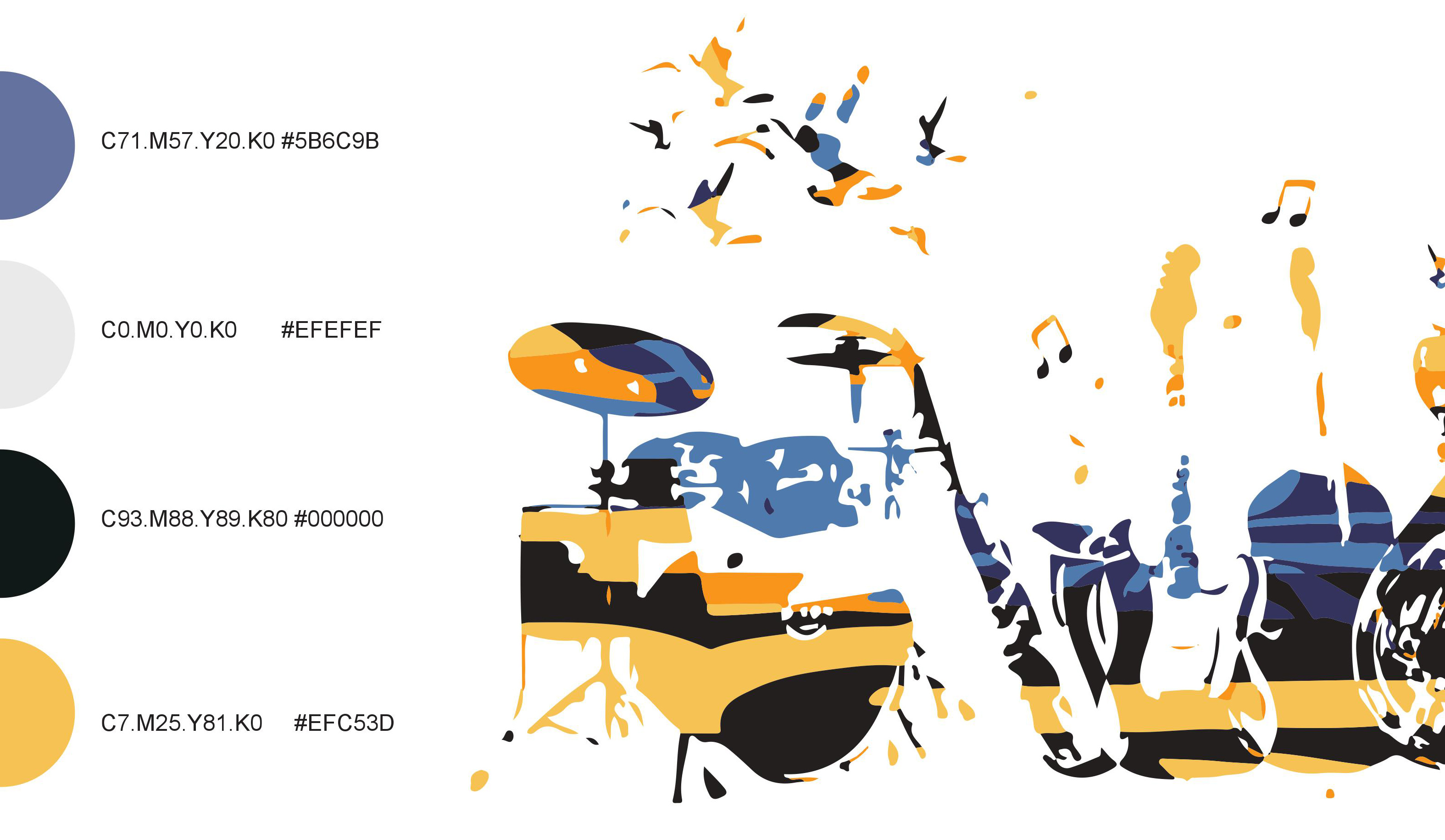 不同的色块组合成链接的山峰形状,象征音乐的起伏,同时体现挺拔刚峻的空间效果。因图案具有较强的丰富性,适合教室空间较小的立面使用。