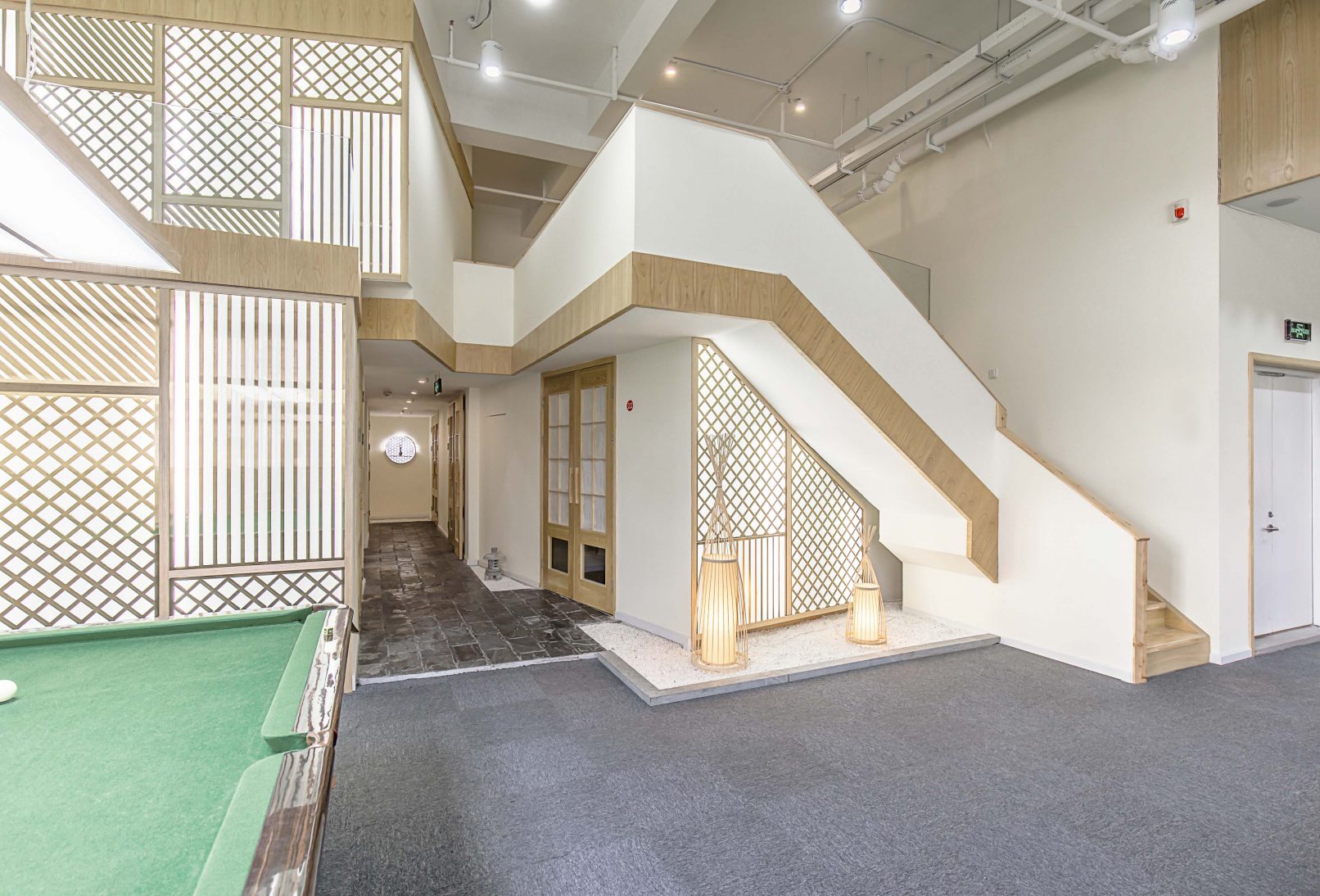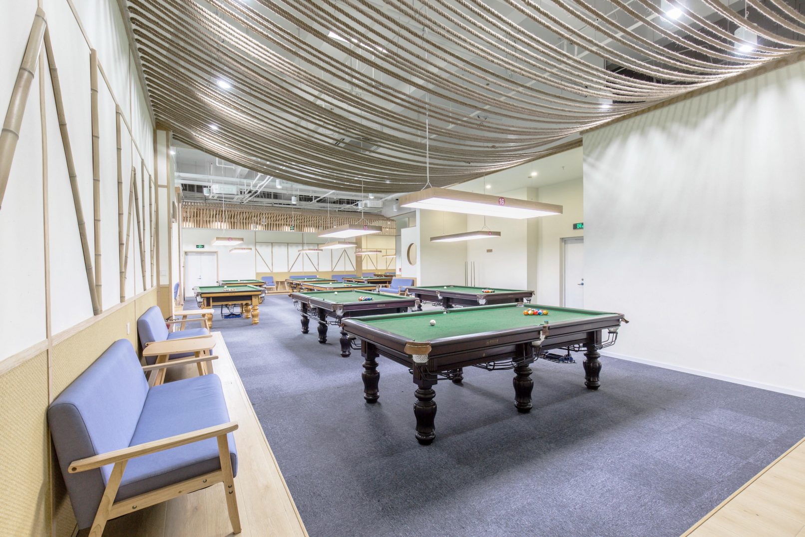 为满足聚会、团建等社交活动的需求,我们力图将该俱乐部设计为一个多元化的有机体。在设计桌球俱乐部项目的同时,我们将茶饮、桌游、棋牌等业态进行结合,让各个功能区相互关联,彼此引流。